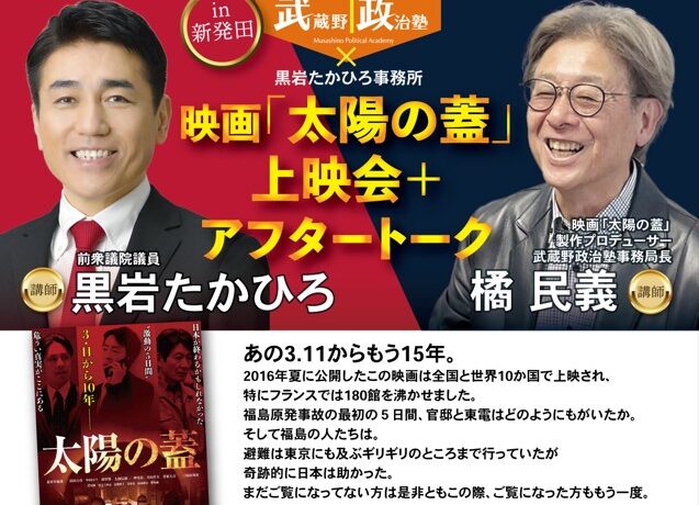 NEW!!【イベント】第40回武蔵野政治塾in新発田『「映画「太陽の蓋」上映会+アフタートーク』の情報公開をしました!